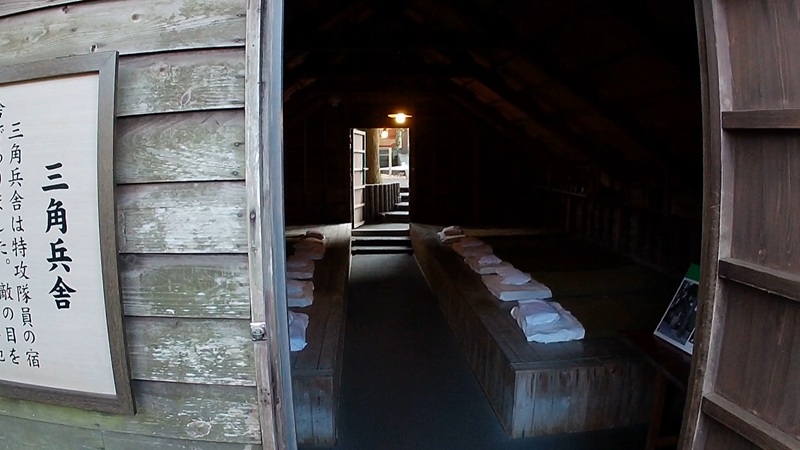 会館の前に 三角兵舎といって 当時の隊員たちの宿舎を模した建物があります